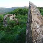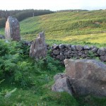 On the road immediately below Kilmore Standing Stones car park is another set of standing stones. Walk through the new cemetery at the top of Dervaig to access the stones. One stone has been incorporated into the wall and the second acts as a gatepost.