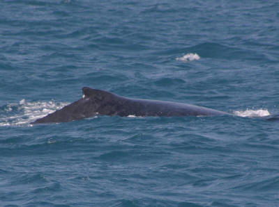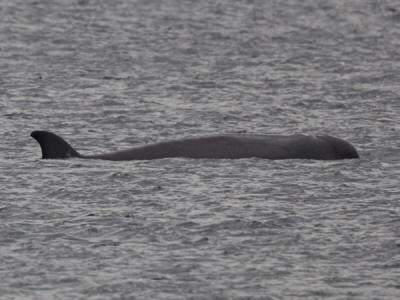 Infrequent visitors, can be confused with Minke Whales, due to the size and shape of the dorsal fin, but have a visible blow unlike Minke Whales and a very different head shape